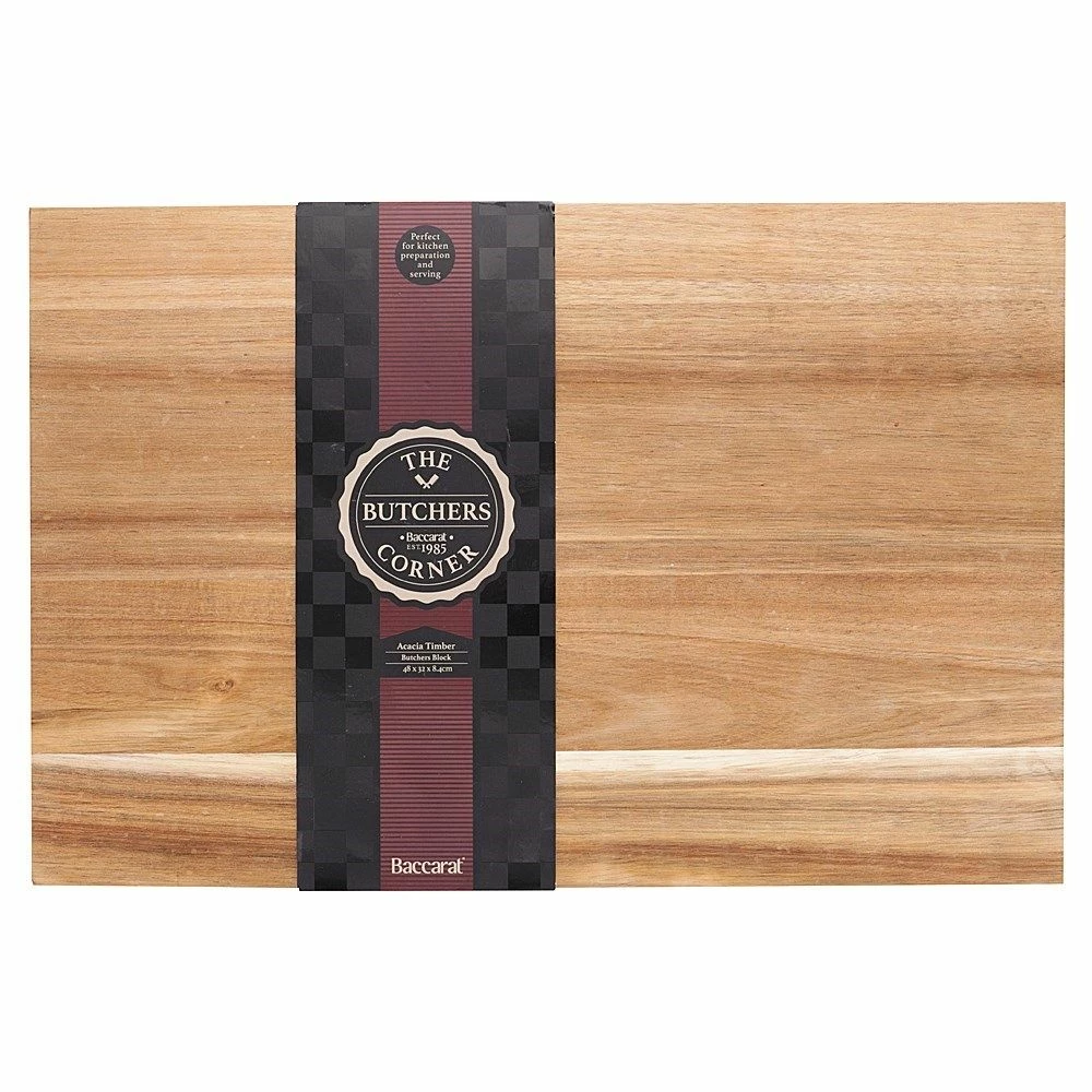 Prepare and serve all manner of mouth-watering culinary creations with the versatile Baccarat Butchers Corner 48 x 32cm Acacia Chopping Board! Fantastic for any avid home cook, this premium quality board is perfect for kitchen preparation and serving. Made from superior quality acacia wood, this chopping board is prized for its strength and beauty. The acacia wood construction is rich in natural oils that provide water resistance and prolongs the sharpness of your kitchen knives. Generously sized, the Butchers Corner Chopping Board is a heavy-weight addition to your culinary collection that can also be used as a stylish serving piece for cheeses, cold meats and other delicacies. Explore your passion for cooking and prepare all kinds of delicious recipes on the robust and beautiful Acacia Timber Butchers Corner Block Size Chopping Board!