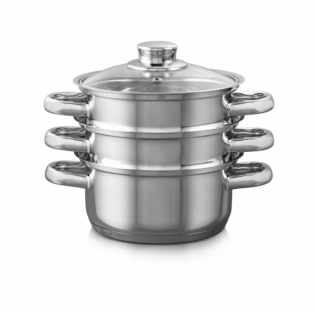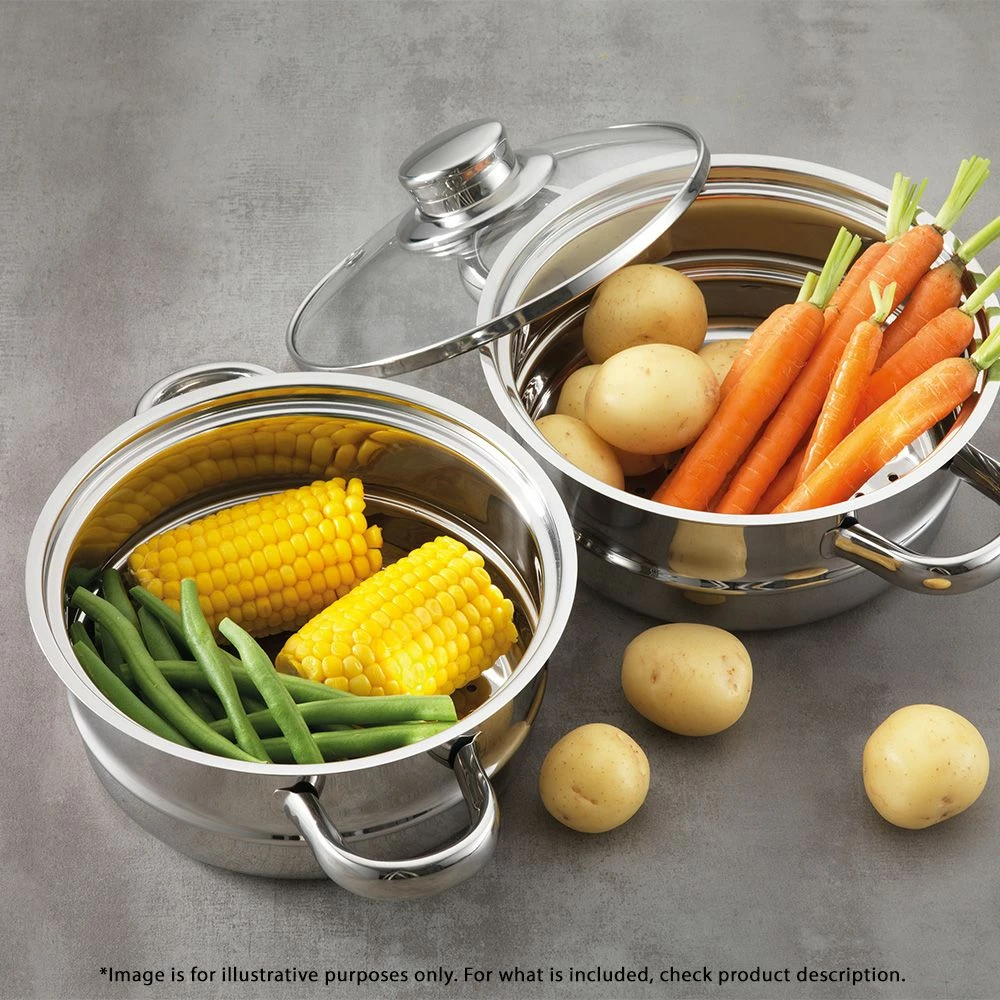 The Baccarat Gourmet 18cm 3 Tier Steamer is ideal for those who enjoy healthy cooking in sleek style! Constructed from premium quality 18/10 stainless steel for durability, the Baccarat Gourmet 18cm 3 Tier Steamer is not only hard wearing but will look fantastic on the cooktop thanks to its satin finish exterior. The Baccarat Gourmet 18cm 3 Tier Steamer features a heavy impact bonded base which allows for quick and even heat distribution giving fantastic results every time, plus it can be used to any cooktop including induction. The Baccarat Gourmet 18cm 3 Tier Steamer also comes with a stylish glass lid that has a handle large enough to fit your oven gloves around to avoid any burnt hands.