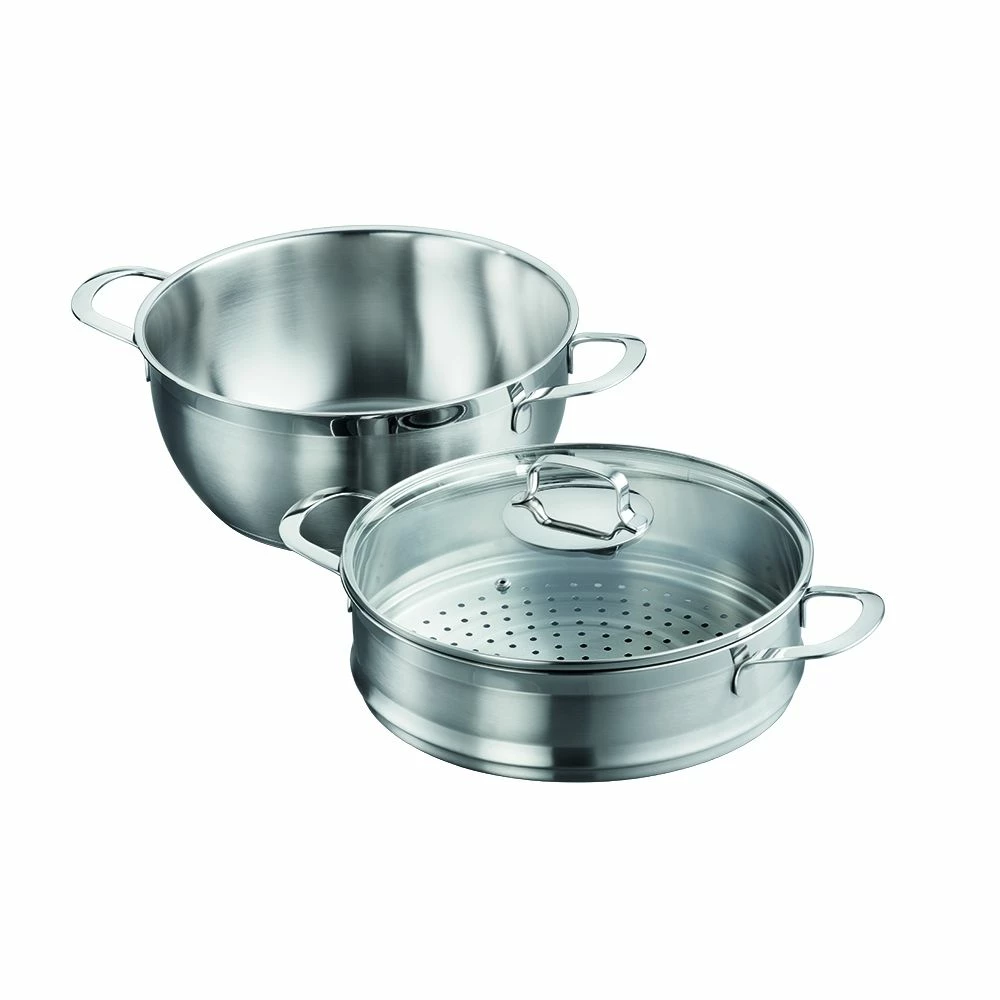 - 2 Piece kitchen essential set includes a 6L casserole pot and steamer insert with tempered glass lid