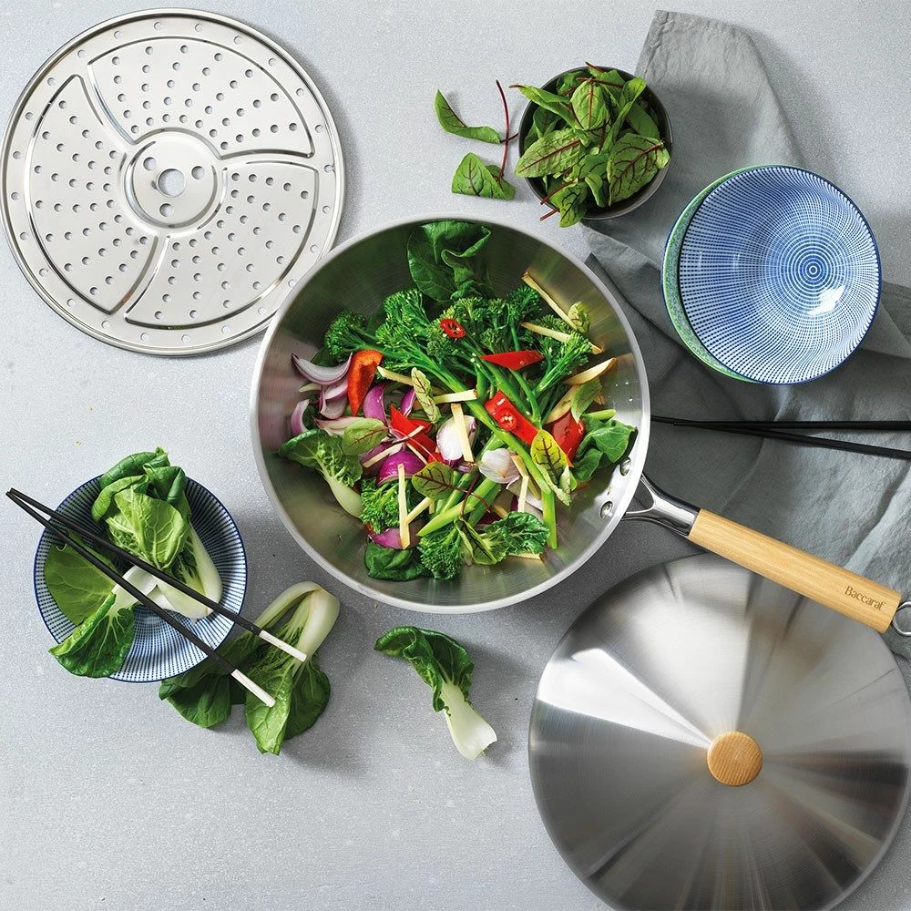 Create delicious stir fry’s and Asian inspired meals for the whole family to enjoy with the Baccarat Gourmet Stainless Steel Wok & Steam! Essential for every kitchen, this cookware inspires endless delicious culinary creations. It has a durable stainless steel construction with deep sides, ideal for cooking stir fry’s, pasta dishes and poaching. With a stainless steel steamer insert and lid, the Baccarat Gourmet Wok & Steam is great for cooking dumplings, wontons and vegetables. The holes allow for maximum steam to circulate around and over the food for succulent results every time. Equipped with a domed stainless steel lid, the Wok & Steam keeps in steam for perfect Asian inspired dishes but also to recirculate juices when casseroling. Enjoy a lifetime of quality cooking experiences with the Baccarat Gourmet Stainless Steel Wok & Steam!