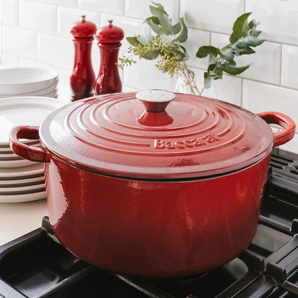 Explore the richness of European cuisines and create delicious stews, casseroles, and other divine dishes with the Baccarat Le Connoisseur Round Cast Iron French Oven! With a generous 6.3L capacity, this essential winter cookware item is perfect for preparing hearty and healthy dishes to warm the hearts and bellies of your friends and loved ones. Crafted from premium grade cast iron, the Baccarat Le Connoisseur French Oven is designed to be incredibly tough to withstand many autumns and winters worth of use, and remains resistant to chipping and breaking. Moulded with easy-grip handles for safe handling, the Le Connoisseur French Oven also includes a lid with unique spikes on the underside that actively collect and channel moisture back into the food, whether you’re cooking on the stove or in the oven the Le Connoisseur French Oven ensures perfect results every time.
