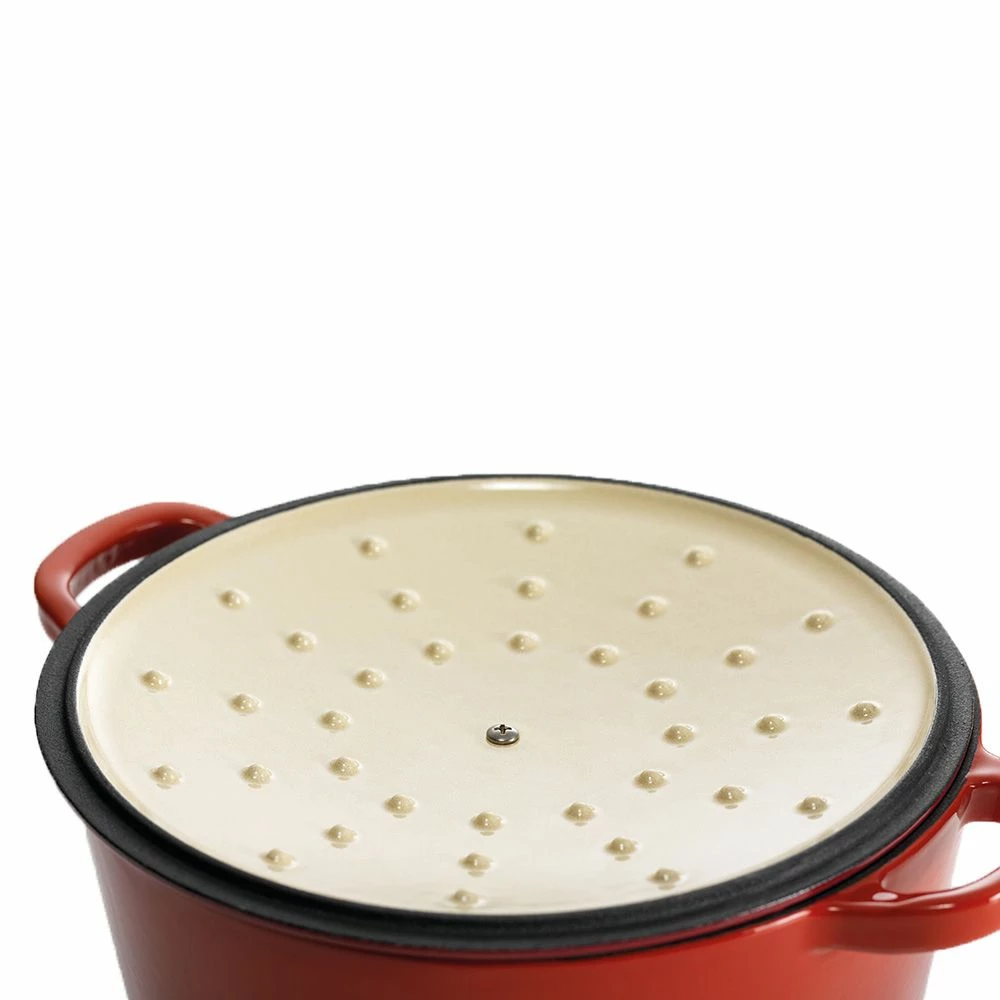 - Equipped with a self-basting lid that features moisture release spikes to ensure succulent results