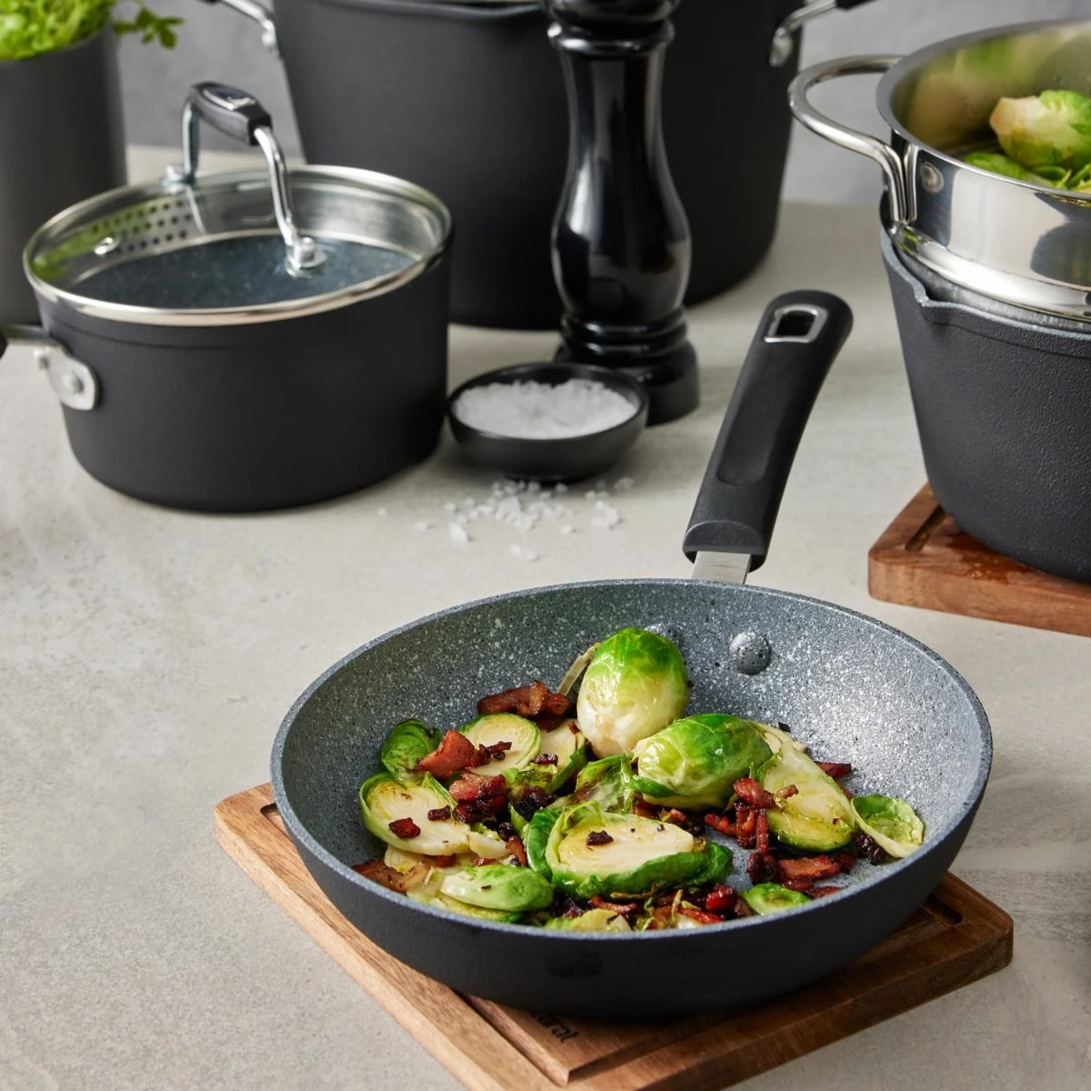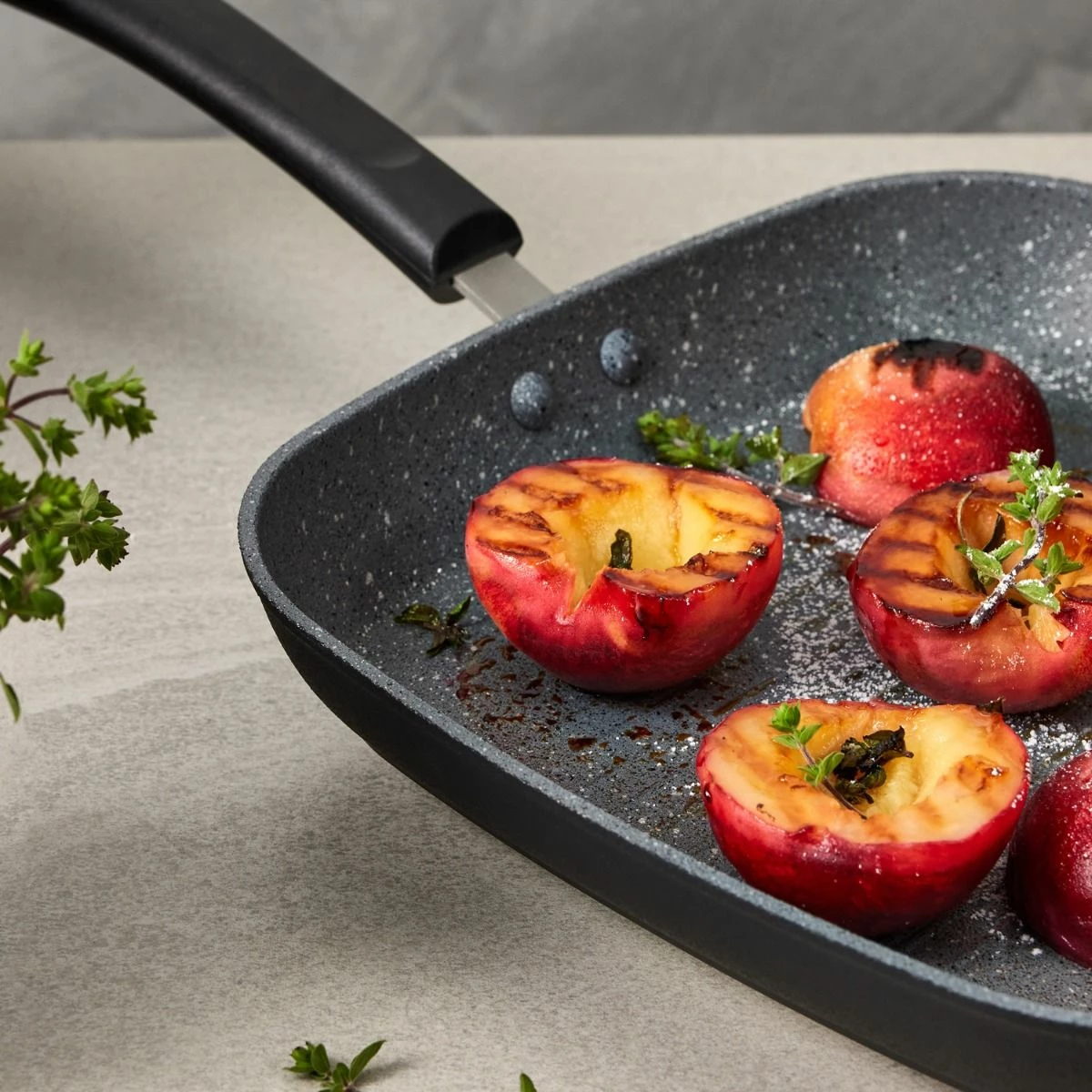- Set includes 1 x 20cm Fry Pan, 1 x 26cm Fry Pan, 28cm Grill Pan