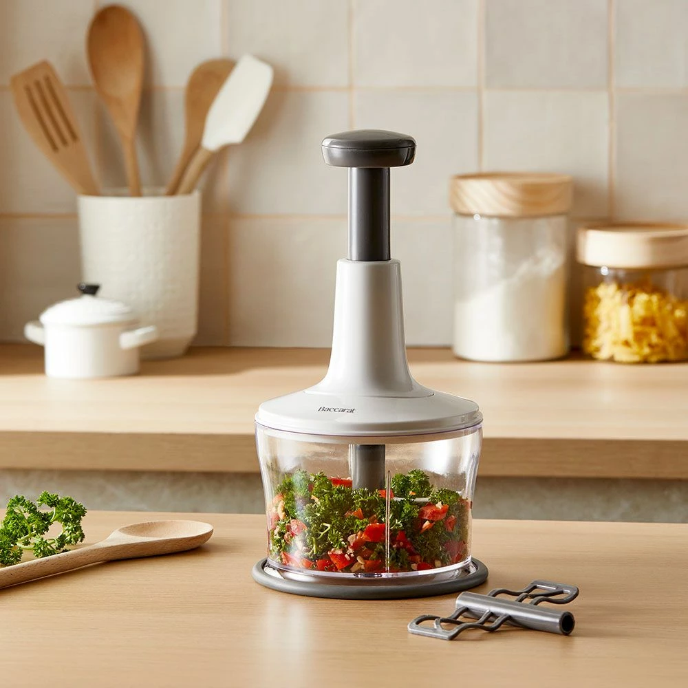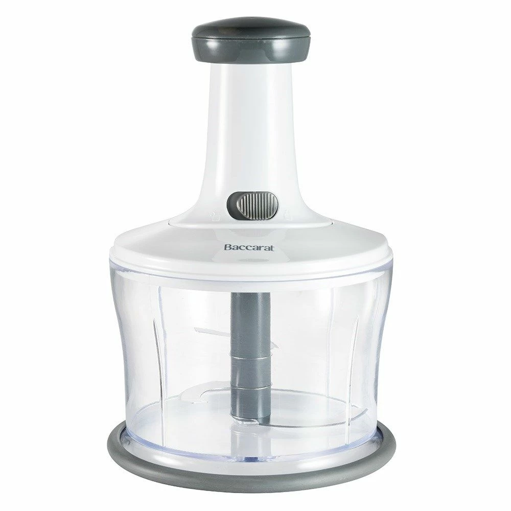 Cut down on meal preparation time with the innovative and easy to use Baccarat Prepare Food Chopper II! This high-performance kitchen gadget is actioned by pumping the unlocked handle down. The more you pump, the finer the chopped ingredients. It is ideal for chopping all kinds of fresh ingredients and is fantastic for those who are health conscious or have specified diets. The Prepare Food Chopper II comes designed with a locking mechanism which slides to lock the handle in a down position for compact storage. It features a non-slip base for enhanced safety and stability, keeping the chopper firmly in place while in use. Create delicious omelettes, dips, milkshakes and more by chopping, grinding or mincing with the Baccarat Prepare Food Chopper II!