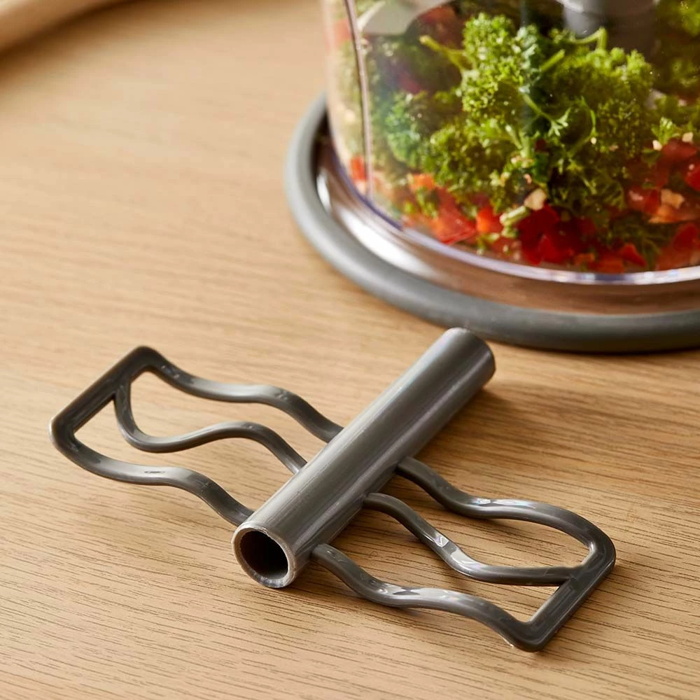 - Chopper is actioned by pumping the unlocked handle down, the more you pump, the finer the chopped ingredients
