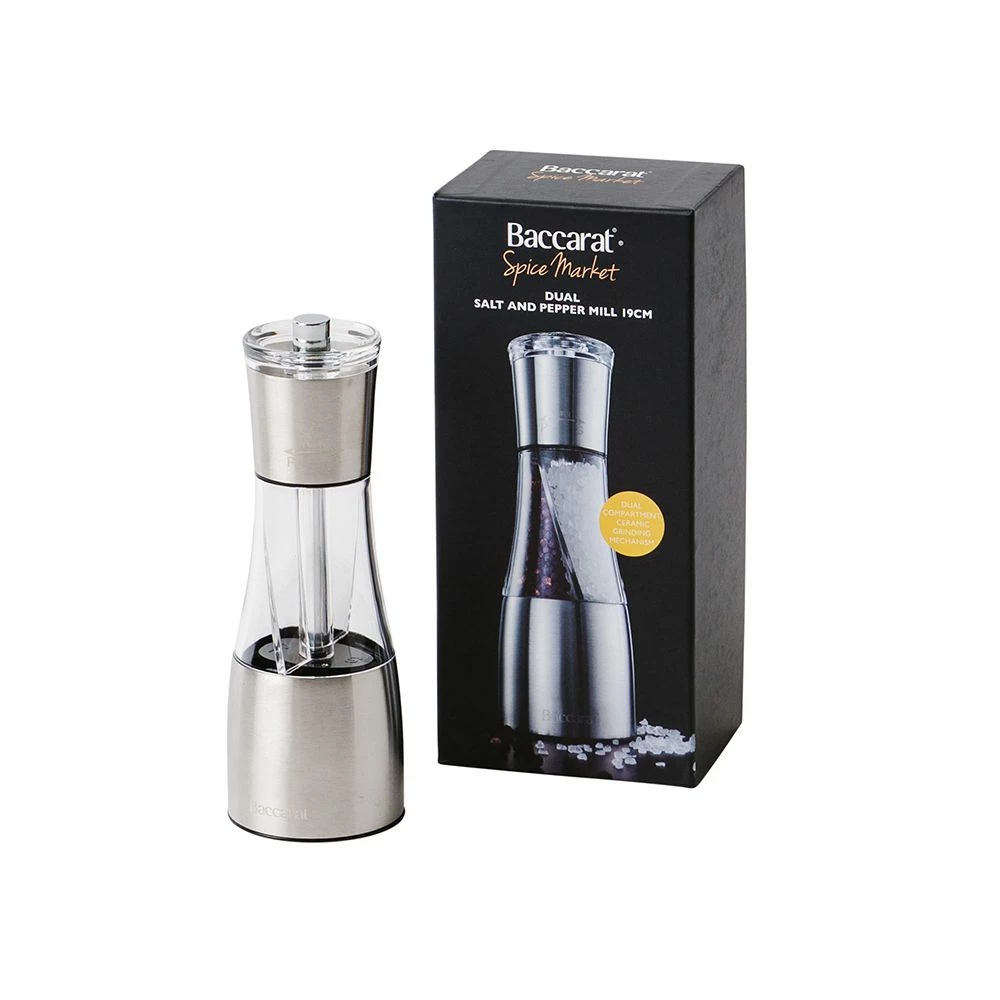 Baccarat have designed the Spice Market Salt & Pepper Dual Mill to be practical in the kitchen and attractive on the table. Featuring a dual compartment that can hold both salt and pepper and acrylic chambers makes refilling the contents easy. The Baccarat Spice Market Salt & Pepper Dual Mill offers the ability to adjust the grind settings to either coarse or fine to suit your cooking preferences. Crafted from ceramic mechanism, this mill will limit the rust and provide consistent grind results. It comes presented beautifully boxed and makes a delightful gift for housewarmings, birthdays, and other special occasions. Refresh your dining aesthetic with the Baccarat Spice Market Salt & Pepper Dual Mill.