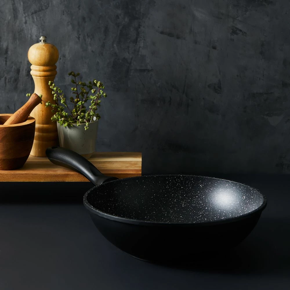 Enjoy professional non-stick cooking with the Baccarat STONE Wok With Lid 28cm. The wok is suitable for all cooktops and is oven and dishwasher safe. The wok has a non-stick interior that is environmentally friendly, PFOA pollution free, hard wearing and has an easy to clean interior surface. Being non-stick, no oils or fats are needed for healthier cooking. The sturdy body provides effective and even heat distribution reducing cooking times and saving energy and fuel. The Baccarat STONE Wok With Lid 28cm features a splatter proof glass lid suitable for oven use up to 180C. The Baccarat STONE Wok With Lid 28cm comes with the Baccarat Lifetime Guarantee, so you can be confident in your purchase.