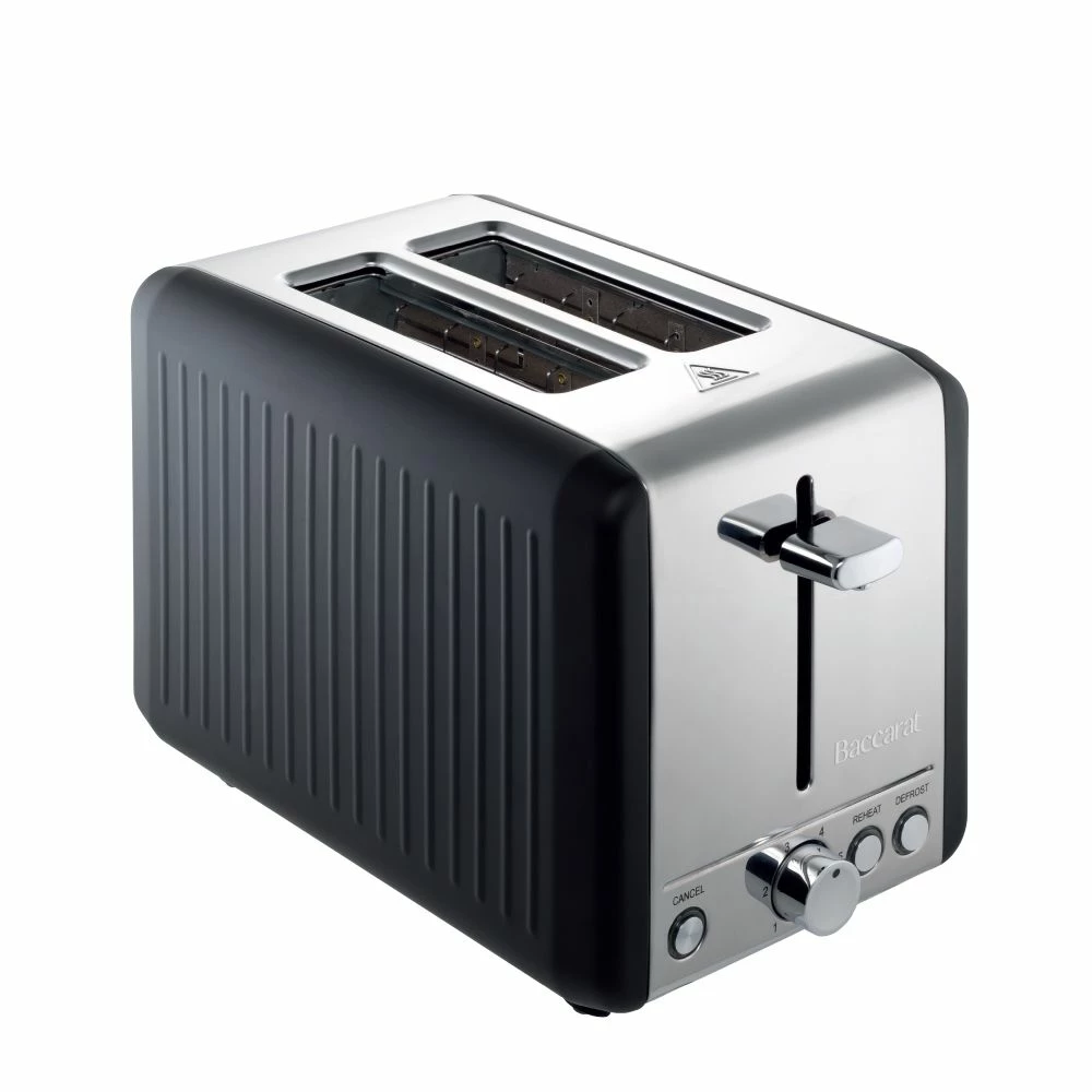 INTRODUCTORY OFFER. Start your day with a scrumptious slice of crispy toast cooked to perfection in The Toasty Slice 2 Slice Toaster by Baccarat®. A kitchen essential with a stylish and contemporary look, this toaster boasts a sleek matte black stainless steel finish. Your toast will be browned to perfection every time with the 6 browning control settings and the one touch defrost and reheat controls. Thanks to the extra wide and deep self-centring slots, The Toasty Slice 2 Slice Toaster by Baccarat® can fit a wide variety of sized breads, crumpets, muffins and waffles with delicious results. You can also toast straight from the freezer thanks to the convenient defrost value. The handy reheat setting warms back to toasty goodness. The high lift feature to raise bread for easy removal and removable bread crumb tray for easy cleaning. Complete the look by matching The Toasty Slice 2 Slice Toaster to The Boiling Point Kettle by Baccarat®.